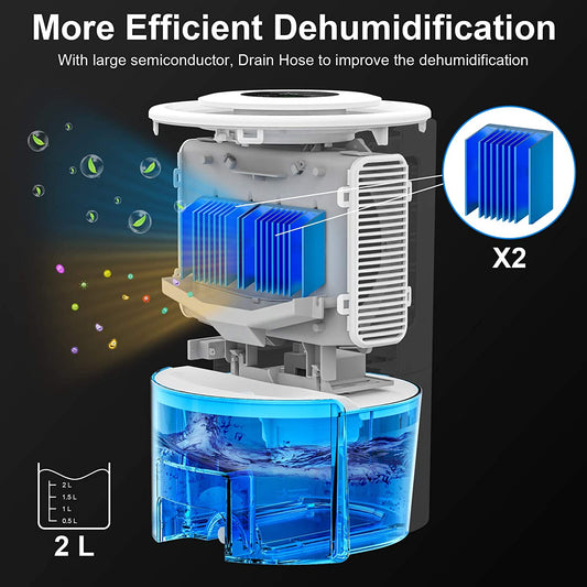 Portable Dehumidifier (2000ml) with drain hose for 480 Sq.ft, for Basements Bedroom Bathroom RV