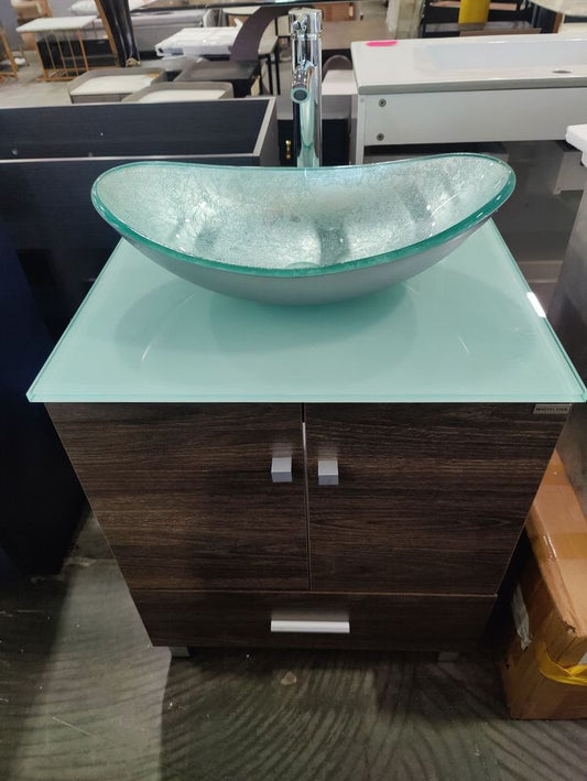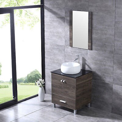24” White Bathroom Vanity and Sink Wood Cabinet Top Ceramic Vessel Sink and Drain set with Mirror