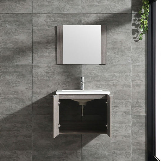 24 Inch Wall Mount Bathroom Vanity Single Wood Cabinet with Undermount Sink Basin