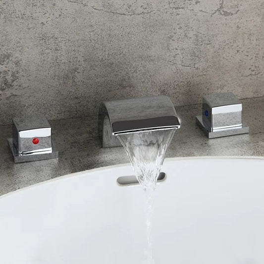 Waterfall Widespread Sink Faucet With LED Lights Double Knobs