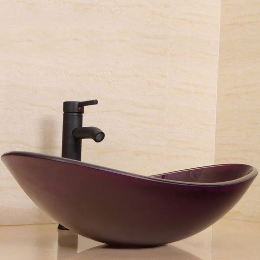 Tempered Oval Glass Vessel Sink Basin, Purple (Faucet and Pop-up Drain Not Included)