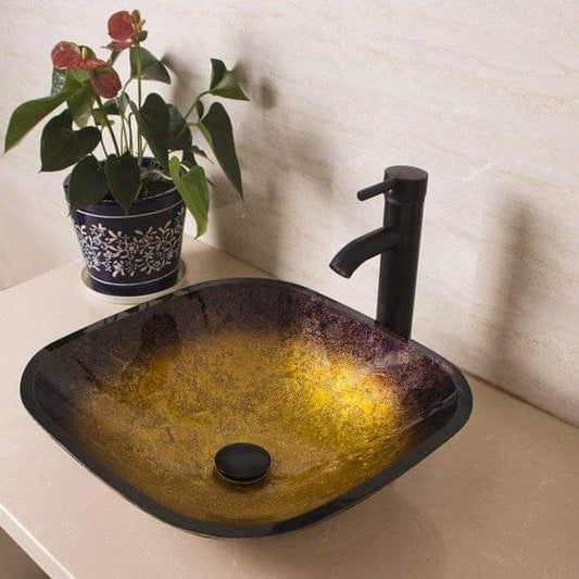 Square Bathroom Tempered Glass Bowl Vessel Sink (Pop-up Drain and Faucet Not Included)
